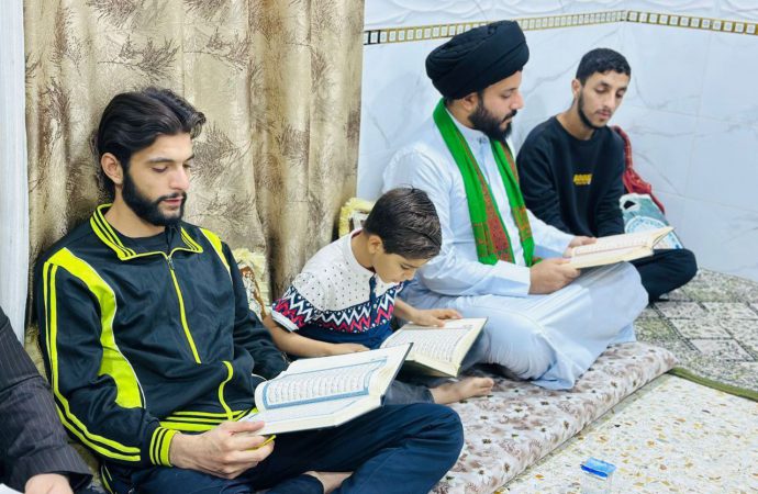 ❇️برعاية جامعة المصطفى العالمية – ممثلية العراق، أقام دار القرآن الكريم في حوزة الإمام الهادي (عليه السلام) ختمة قرآنية كريمة، نُظّمت في بيوت المؤمنين.