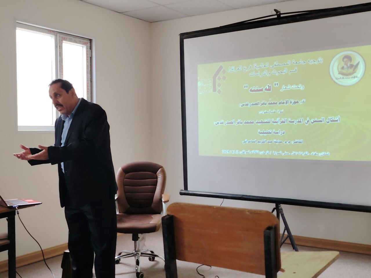 تمحورت الندوة حول موضوع “أشكال السنن في المدرسة القرآنية للشهيد محمد باقر الصدر (قدس): دراسة تحليلية”، وألقاها الأستاذ حذيفة عبد الكريم.
