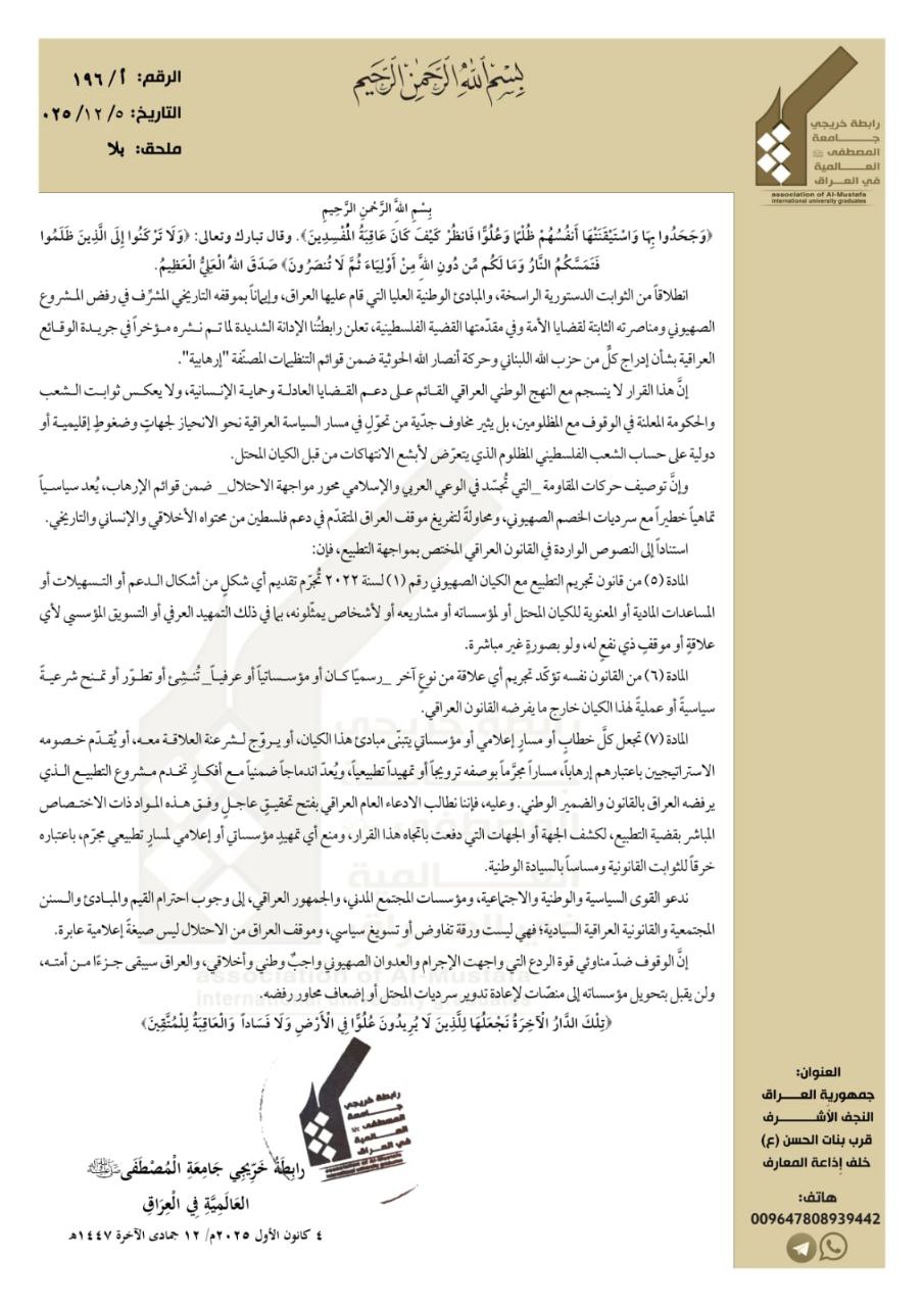 ِن رابطة خريجي جامعة المصطفى العالمية في العراق:
