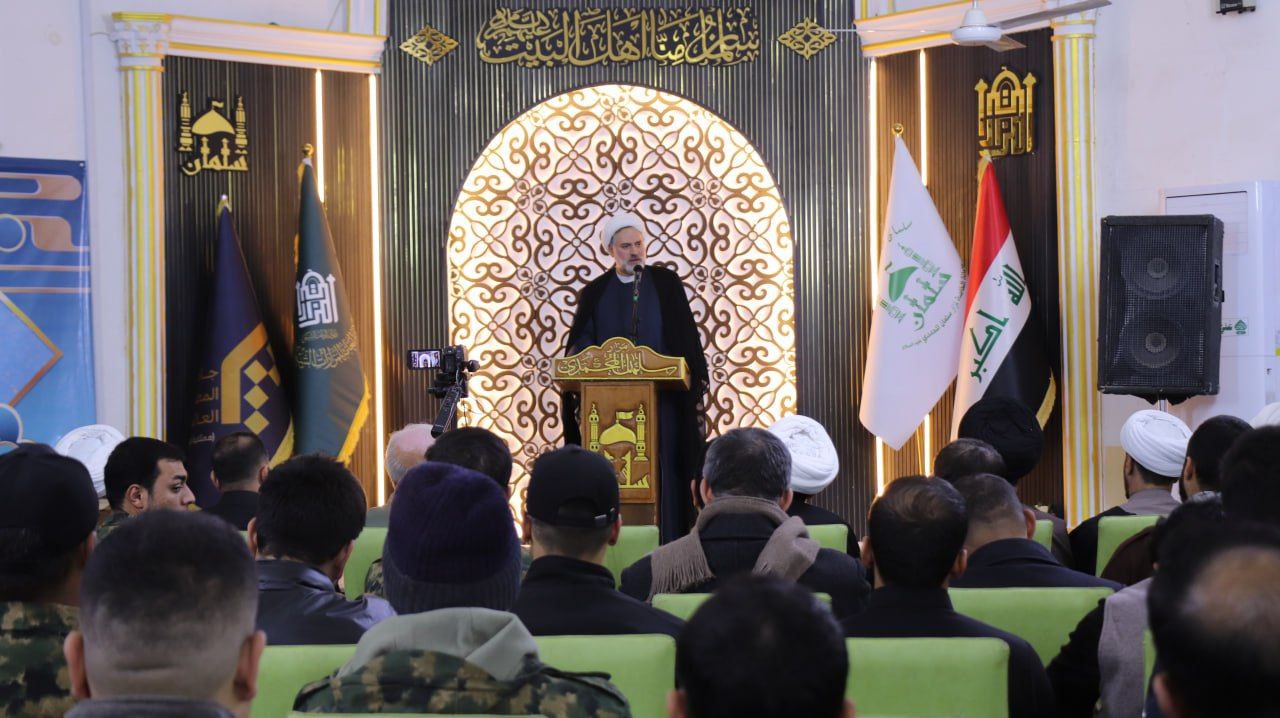 🔻انطلاق الحفل بتلاوة قرآنية مهيبة أعقبتها كلمة الأمين الخاص لمزار سلمان المحمدي، السيد محمد تقي الجزائري، الذي أشاد بـ”الفتوى الرشيدة للمرجعية الدينية والموقف البطولي للشهيدين الذين قدما دماءهما الطاهرة من أجل العراق، ليبقى صامداً في وجه المشاريع المعادية”.